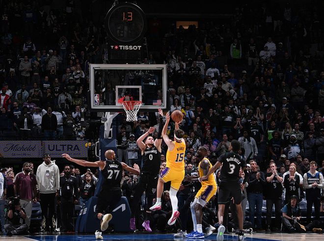 湖人队奥斯汀·里夫斯压哨绝杀,粉碎森林狼队反扑希望